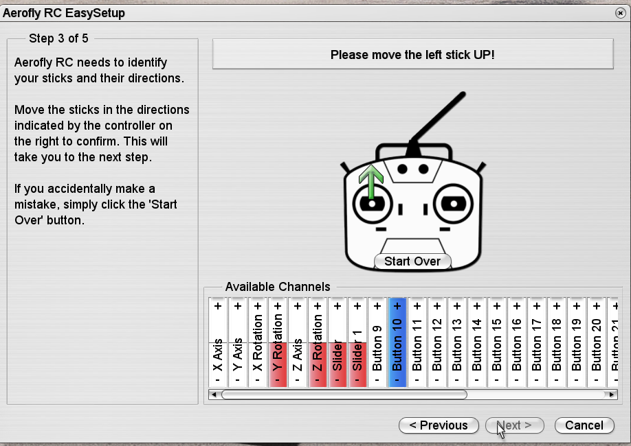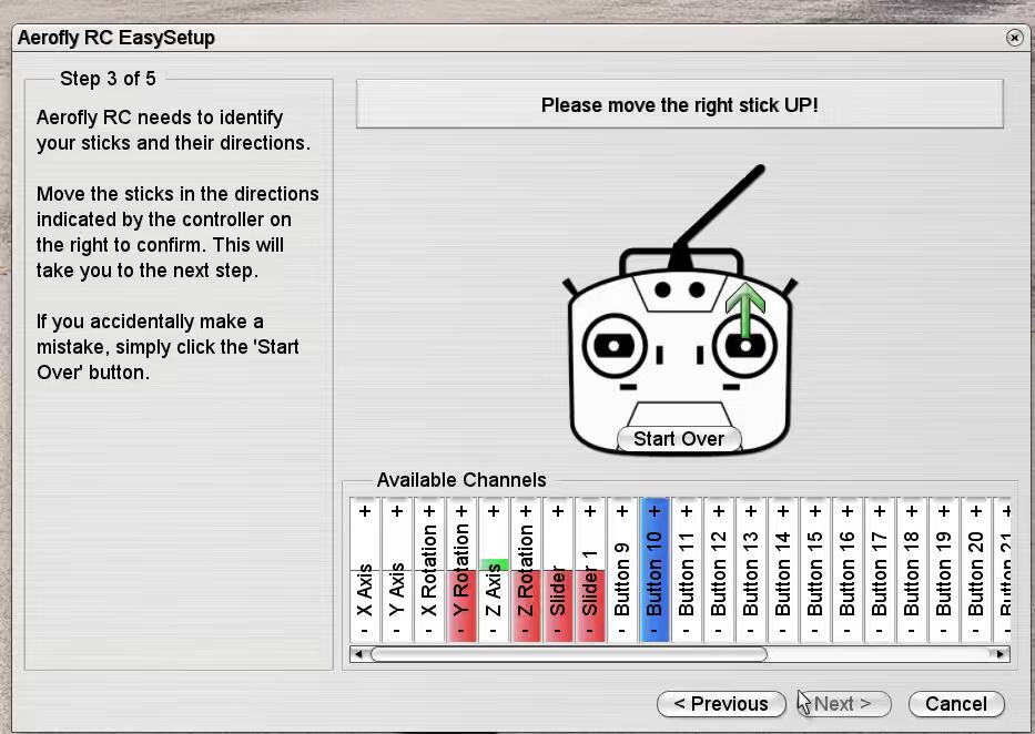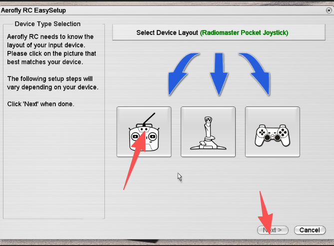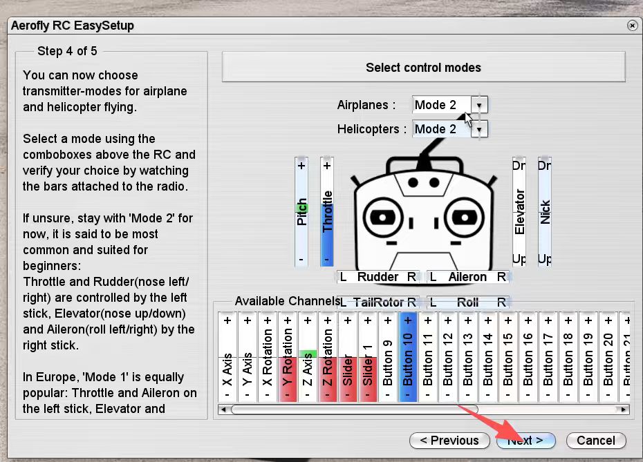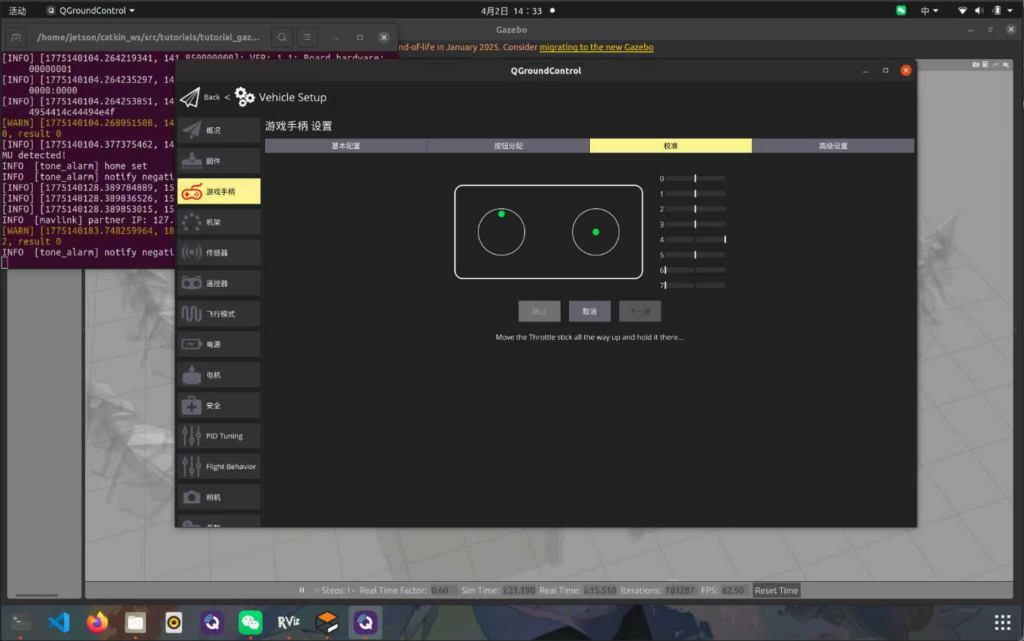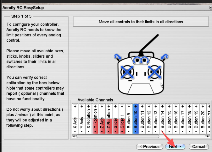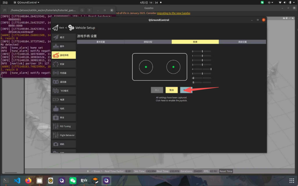 9.先把摇杆按照最大行程上下左右转一圈,随后把遥控器摇杆回中点击下一步