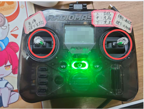 7.根据图标提示将遥控器摇杆往各个方向移动。