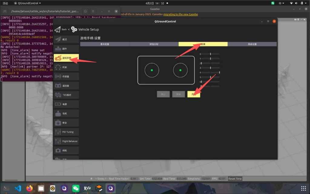 6.找到游戏手柄选项,点击校准页面,将遥控器摇杆均放到中间后点击下一步。