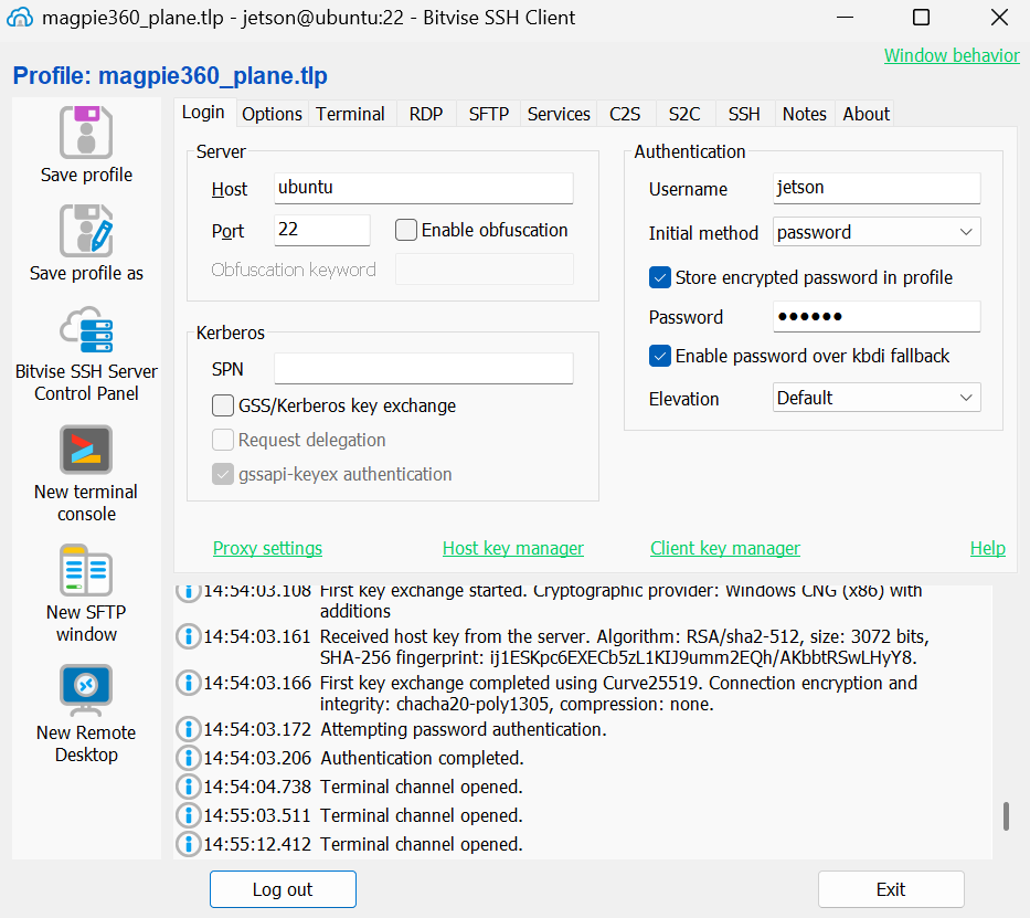 1.打开遥控器电源、接通无人机电源,确认无人机连接到手机热点后建立ssh连接。