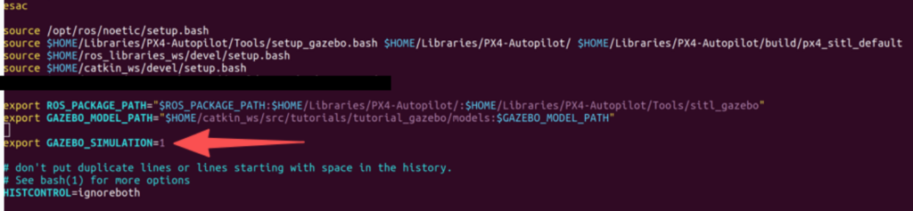 sudo echo 'export GAZEBO_SIMULATION=1' >> ~/.bashrc