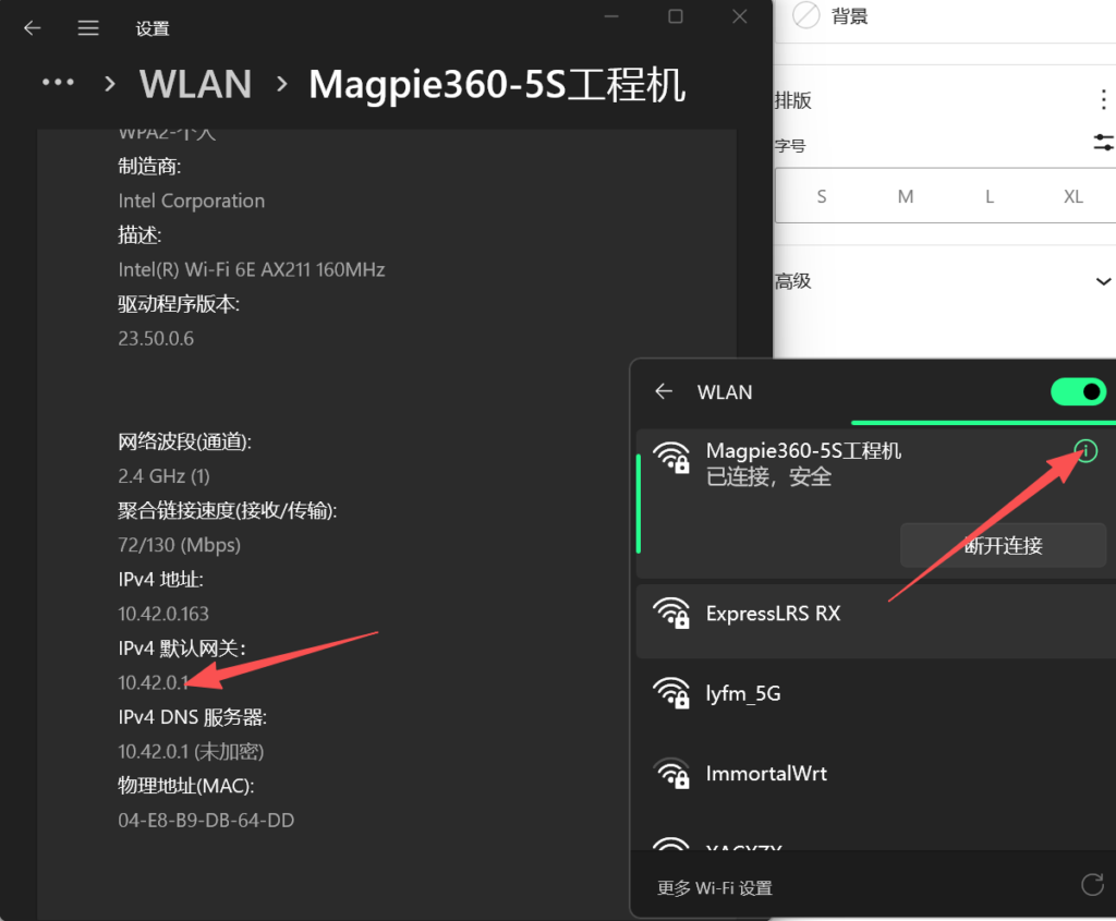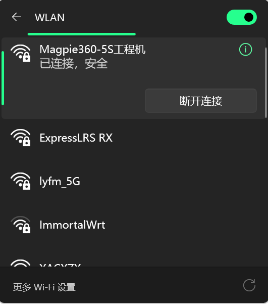 随后,将连接到无人机热点magpie-xxxx,默认密码为无人机序列号后8位。