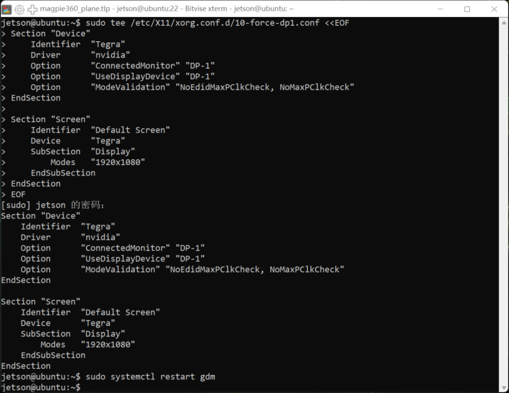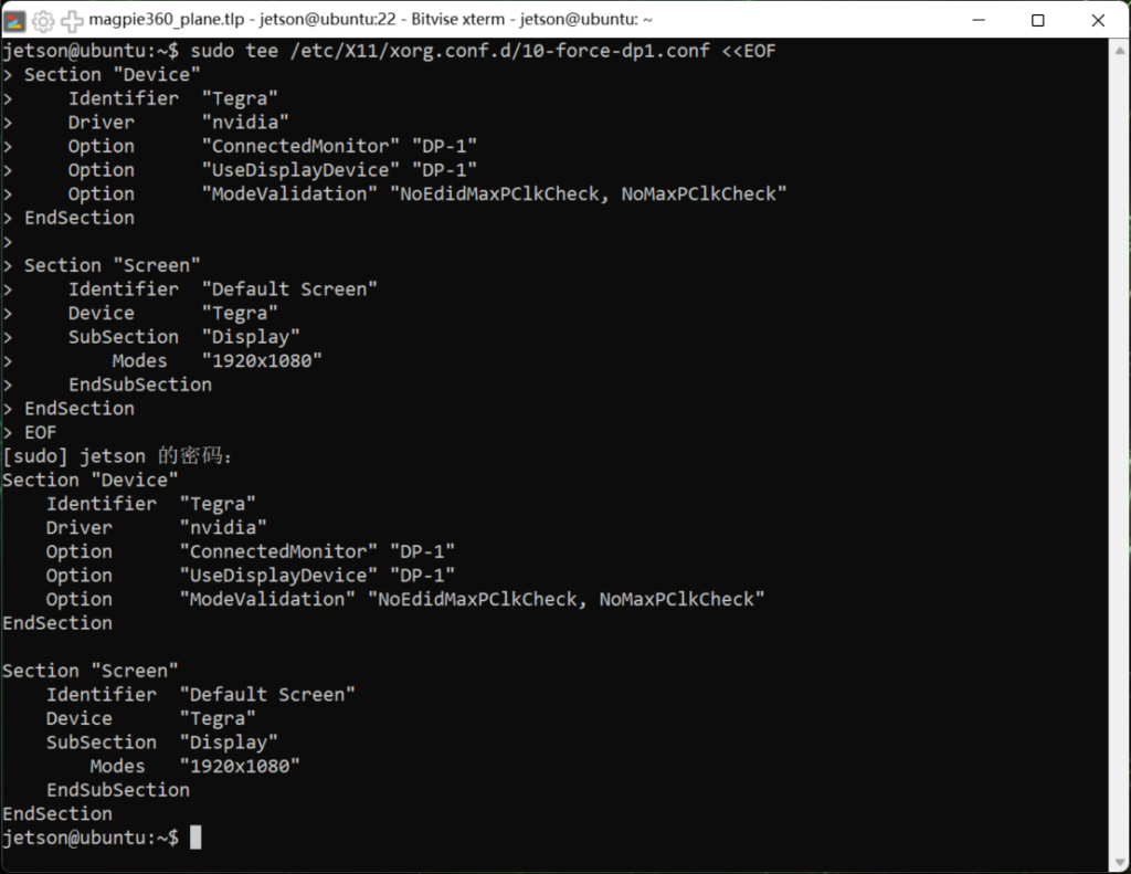 sudo tee /etc/X11/xorg.conf.d/10-force-dp1.conf <<EOF