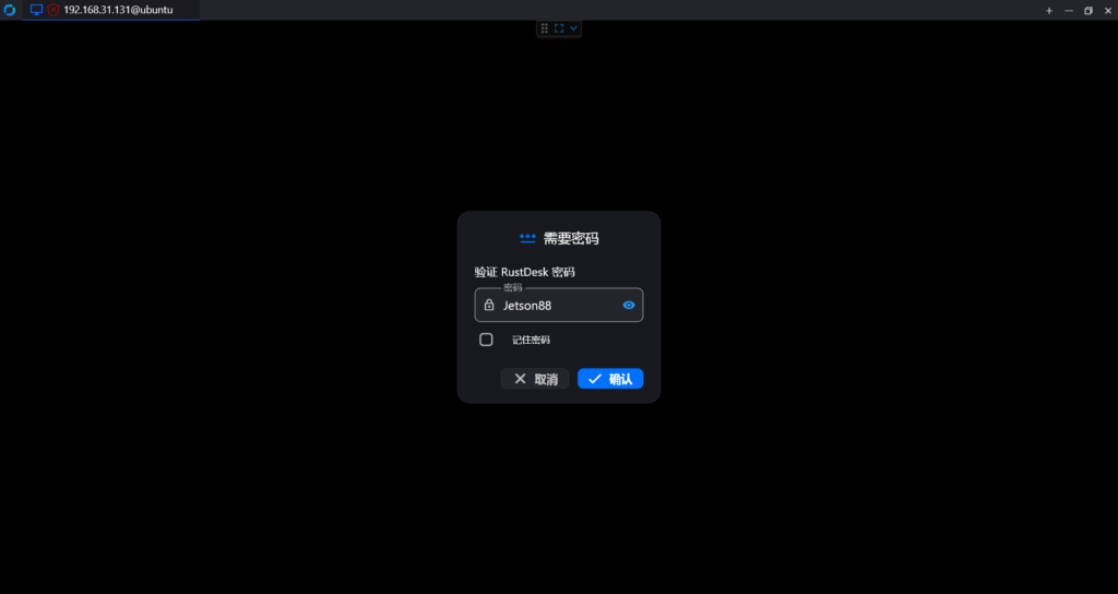 3.输入设置的远程密码(默认为Jetson88)完成连接