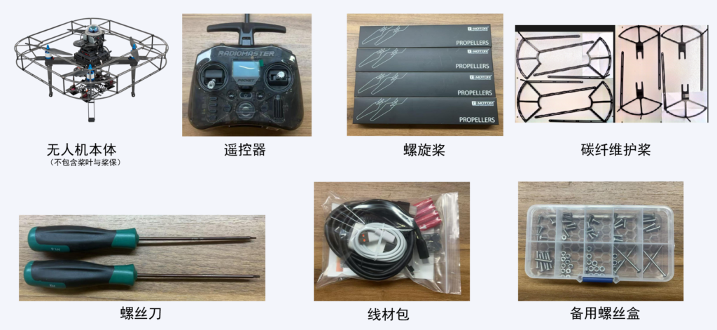 检查所有配件: 确保箱内的所有配件都不缺少且完好无损。 检查无人机外观: 检查无人机的机身、脚架、电机电调及各个传感器是否完好。