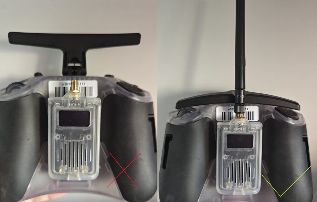 警告!请确保无人机高频头已经安装天线后再打开遥控器,否则容易造成高频头射频模块烧毁。